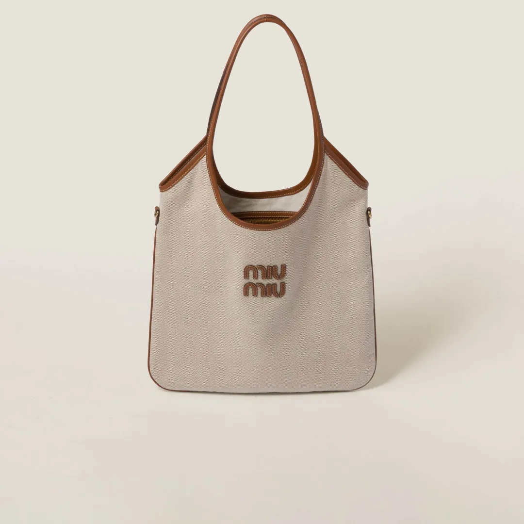 会的なスタイルと独特の夏らしい外観が特徴の IVY キャンバス バッグ。ゴールド トーンの金具とレザーのレタリング ロゴがデザインを引き立て、バッグに象徴的な雰囲気を与えています。