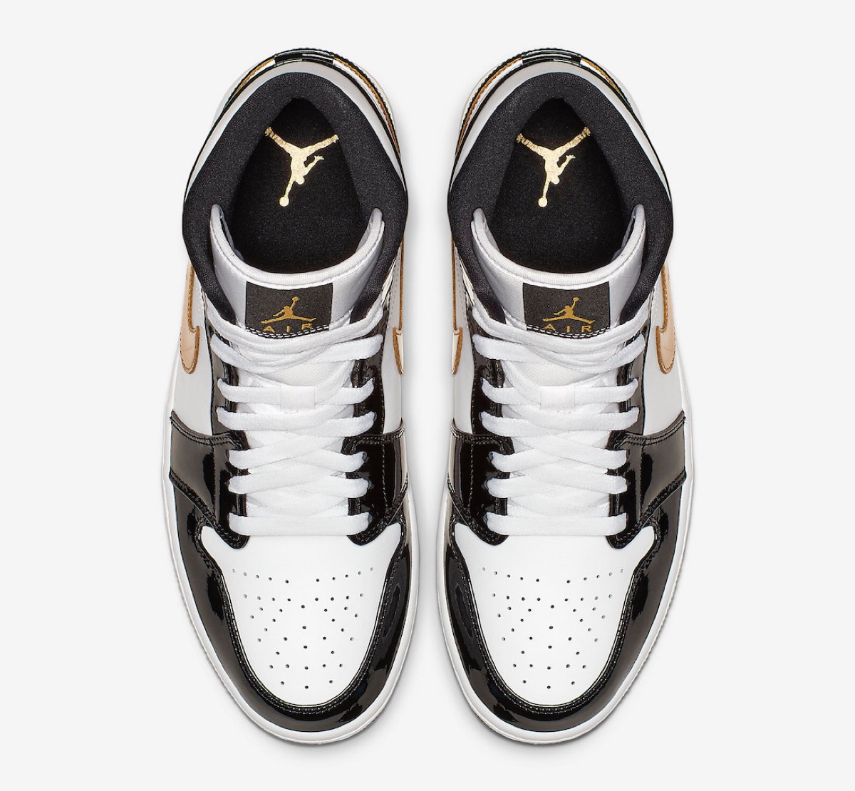 1985年に初めて発売され、今もなお高い人気を誇るスニーカー「Air Jordan 1(エアジョーダン1)」。今回登場するミッドカットSEモデルの新作では、ホワイトカラーのレザー素材アッパーとブラックのパテントオーバーレイを組み合わせ、サイドのスウッシュとウィングロゴにはメタリックゴールドのアクセントをプラスしている。